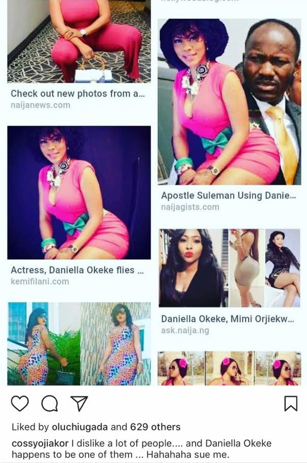 Endowed Cossy Ojiakor seems to be calling out “prominent” people on Her Instagram, and she’s named about 3 of them.. one of which is Apostle Suleman, Daniella Okeke and Iyabo Ojo.