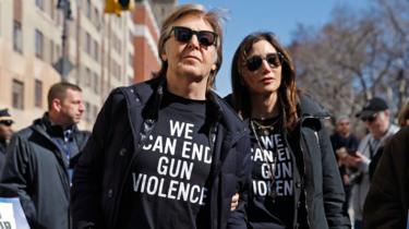 Image copyrightREUTERSImage captionSir Paul McCartney joined the rally in New York City