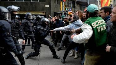 Media captionCatalan protesters clash with police in Barcelona